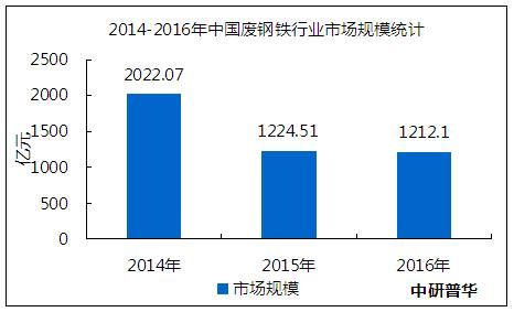 的成长空间。初步核算,2016年,中国废钢铁行业市场规模总计1212.1亿元,同比增长-1.0%,较2014年减少810亿元。
